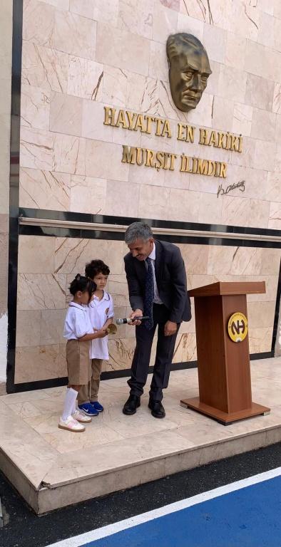 08.09.2025 tarihinde ilk ders öncesi yapılan tören bitiminde okul müdürümüz Muhammet Bahadır temsili 1. sınıf öğrencilerimizle ilk ders zilini çalarak yeni eğitim öğretim yılının startını verdiler.